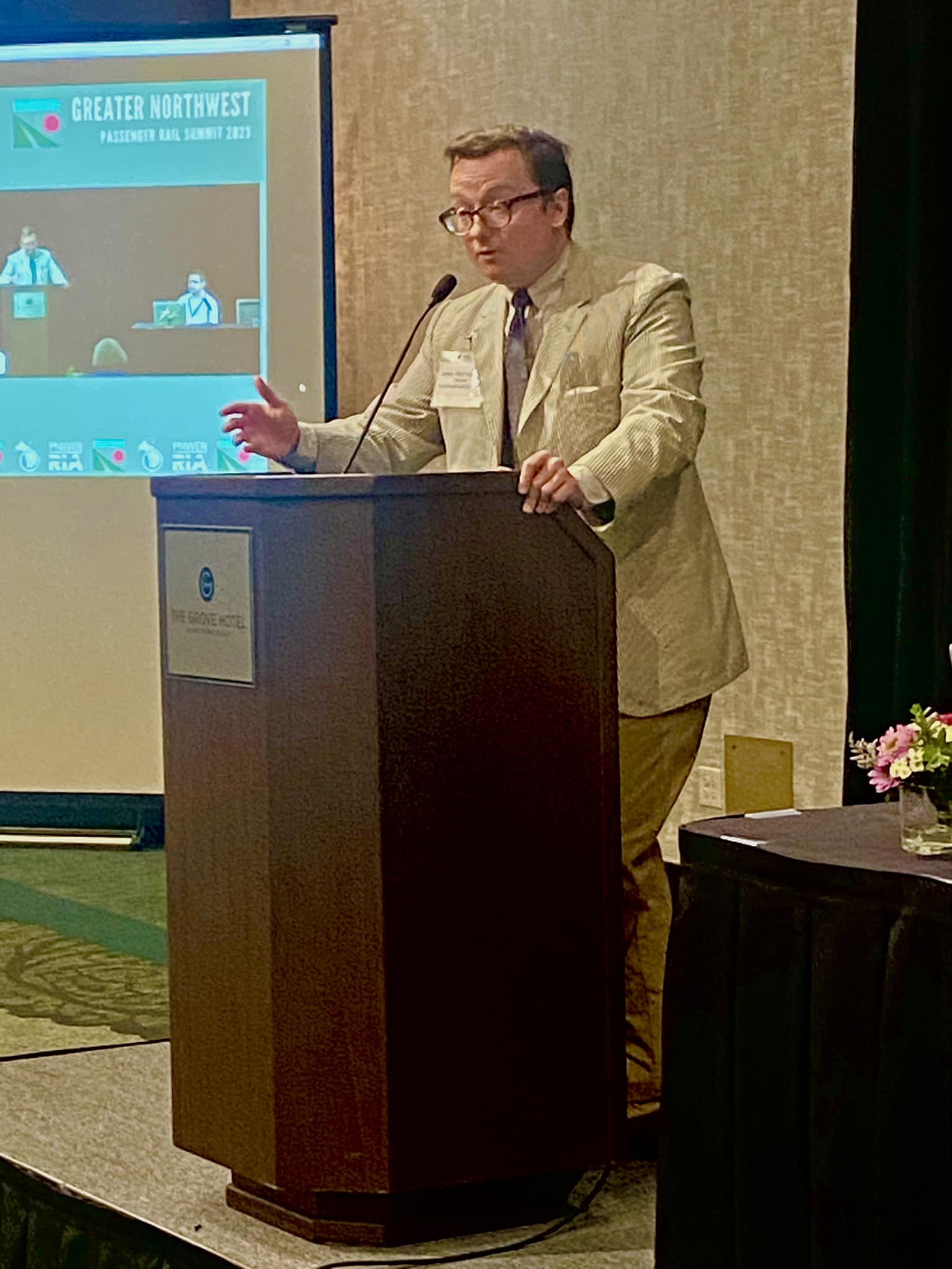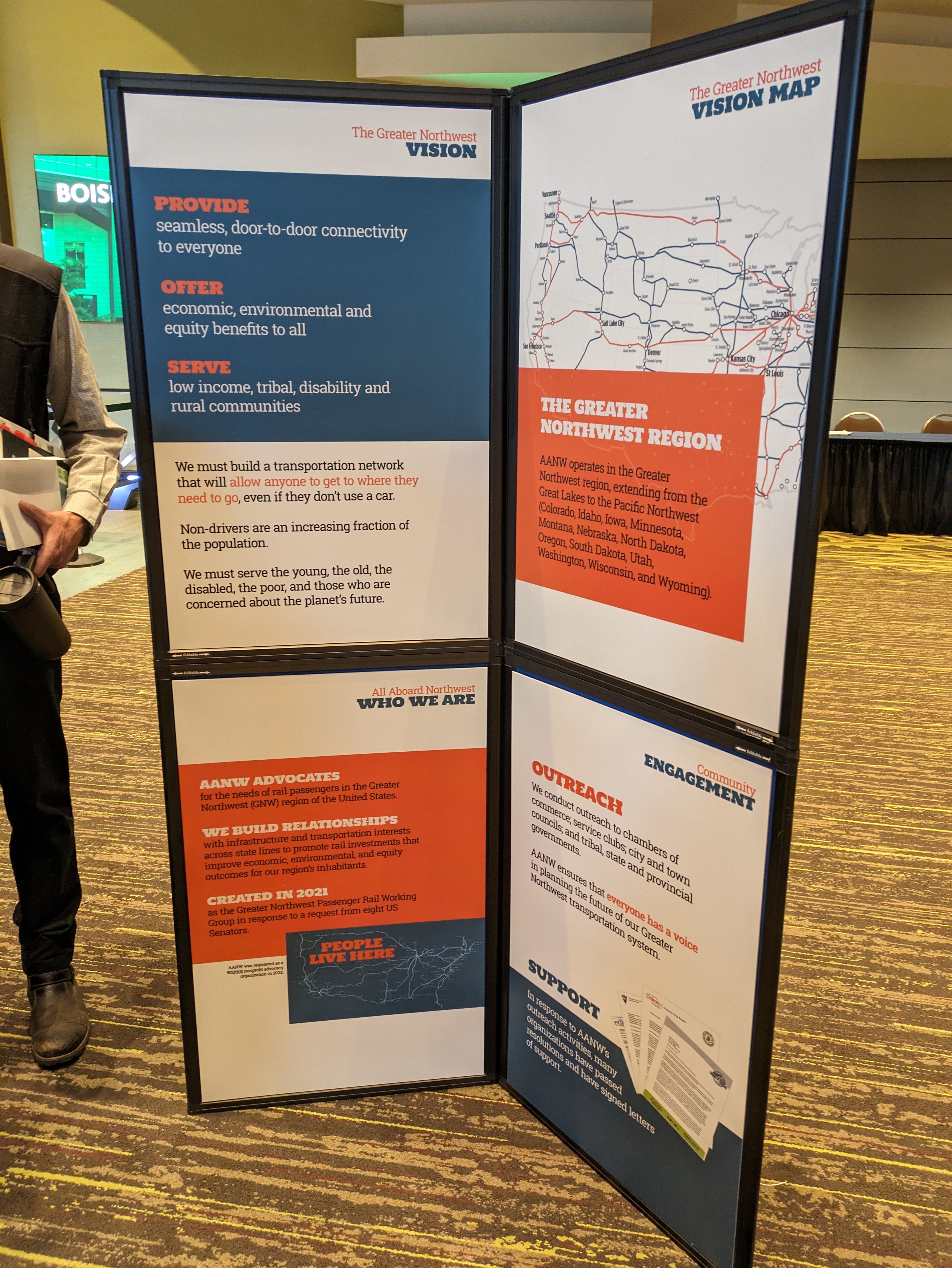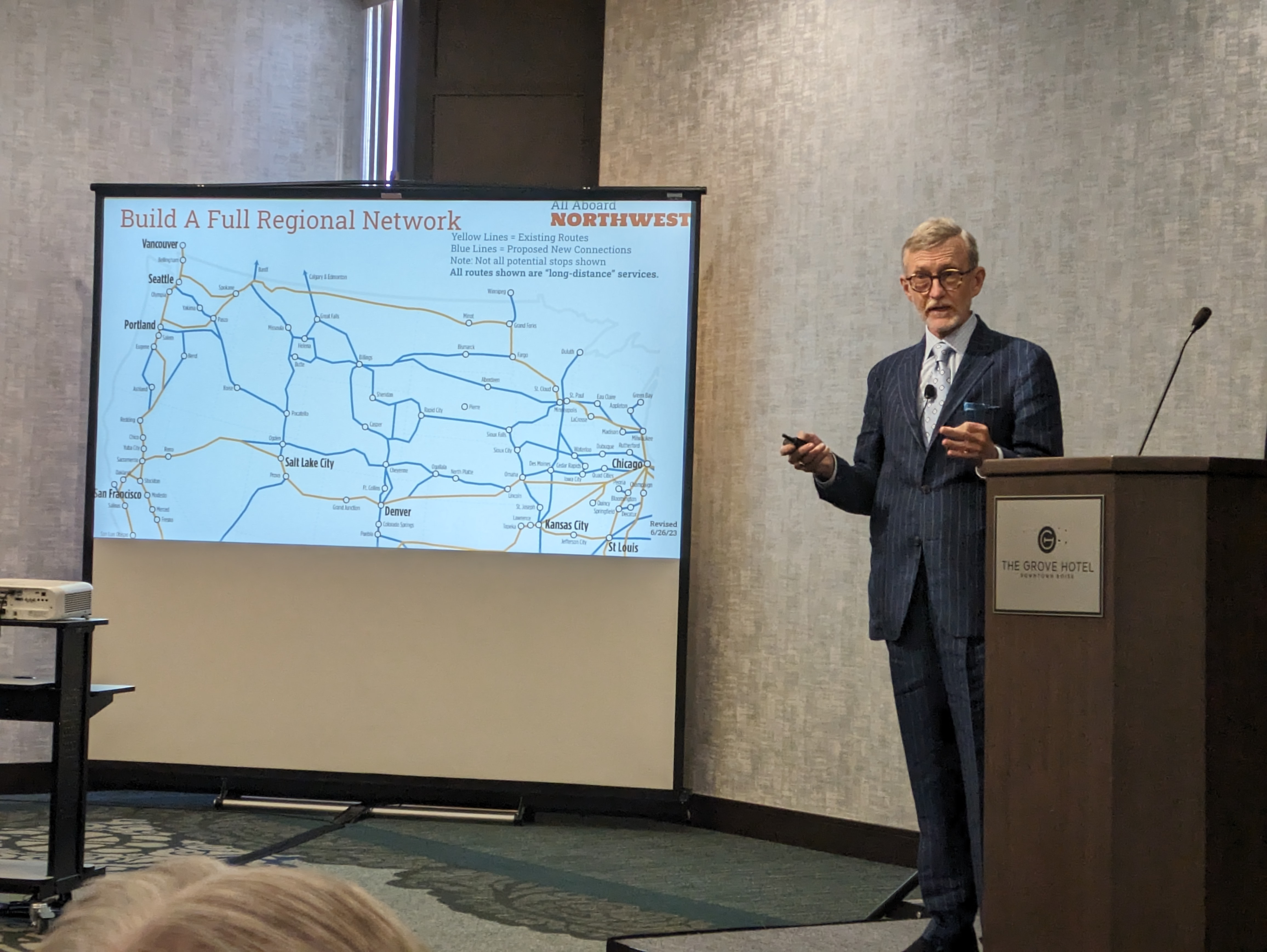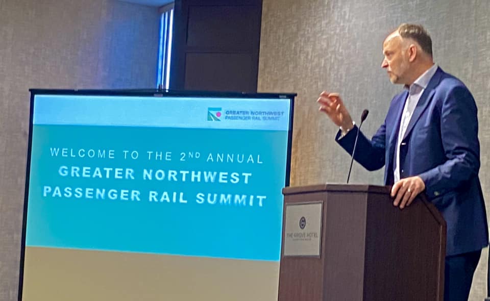 All Aboard Northwest, All Aboard Washington, and The Association of Oregon Rail and Transit Advocates co-sponsored the 2nd Annual Greater Northwest Passenger Rail Summit. The Summit was a great success, and generated a lot of coverage in Boise. In addition to the formal sessions, we were able to have outstanding private conversations with elected officials and community leaders, including Transportation Committee chairs Rep. Jake Fey from Washington and Sen. Chris Gorsek from Oregon. AANW, AAWA and AORTA will be meeting to discuss our priorities for the 2024 legislative sessions. We also had excellent discussions with representatives from the Sierra Club and other environmental groups.