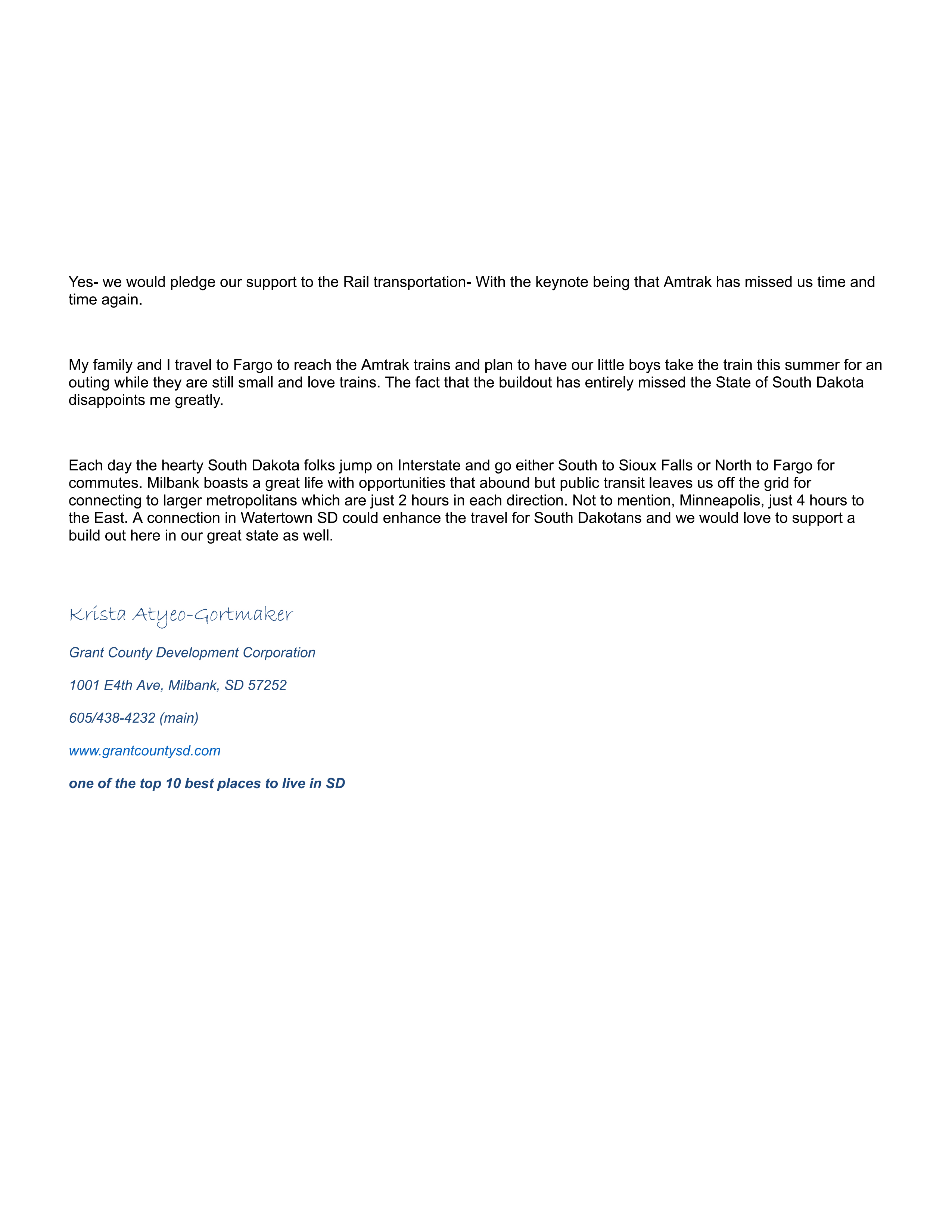 Letters, resolutions and official statements supporting passenger rail expansion or improvements in the last two years (i.e. additional Twin Cities-Chicago Service).